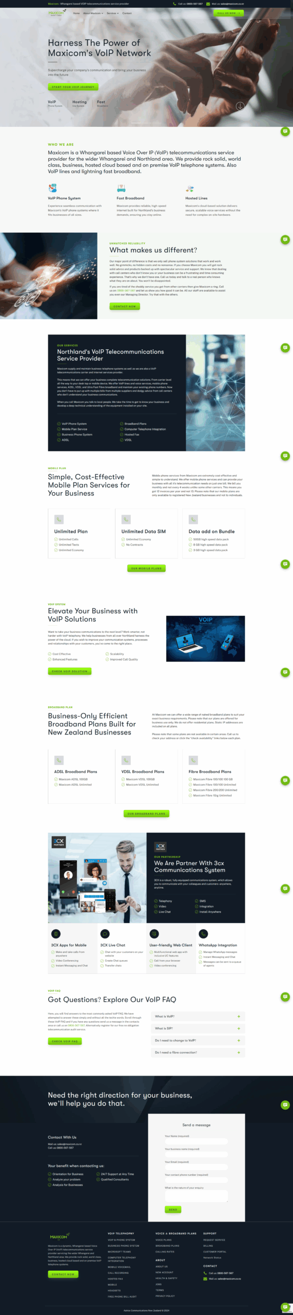 Nafcorp designed Maxicom as a professional website that highlights their expertise as a trusted Voice Over IP (VoIP) telecommunications provider in Whangarei and the wider Northland region. Our website design reflects Maxicom’s commitment to delivering dependable telecommunications services to the needs of businesses in Northland.