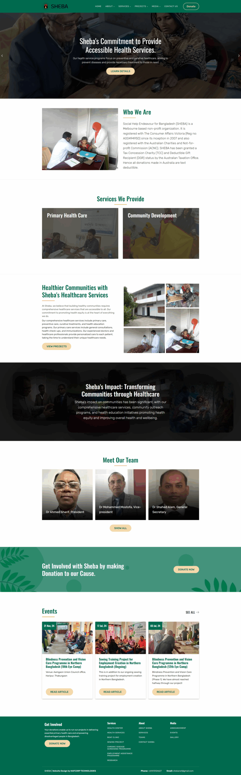 At Nafcorp Technologies, we take pride in designing SHEBA NGO, an organization committed to transforming lives through quality healthcare services and women’s empowerment initiatives. Our collaboration led to the creation of their impactful website. Explore SHEBA NGO’s story of empowerment and discover how technology is driving positive change.
