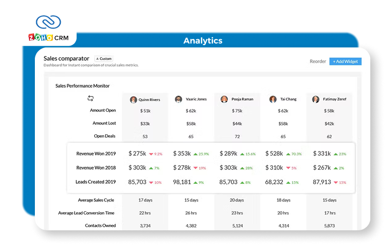 Zoho CRM connects seamlessly with apps like Gmail, WordPress, WooCommerce, and Zoho’s own suite—keeping everything in sync.